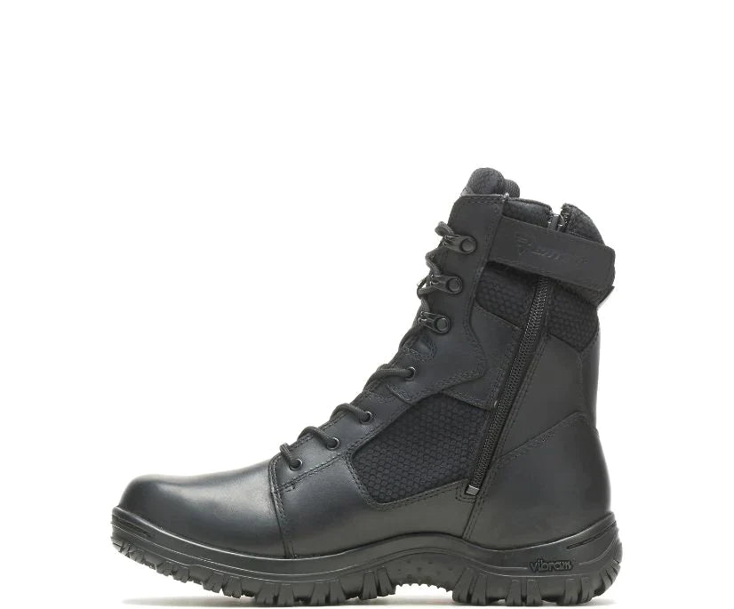 Experience the best of athletic performance and uncompromising durability with the Bates Maneuver 8" boots. Featuring DryGuard+ membrane for maximum breathability and waterproof protection, Quantum5 moisture-wicking and cooling lining, and a Vibram® rubber outsole with a 10mm toe-to-heel drop. The Ortholite® X40 high rebound removeable cushioned insert ensures superior comfort. Get superior comfort and protection with Northern Boots.