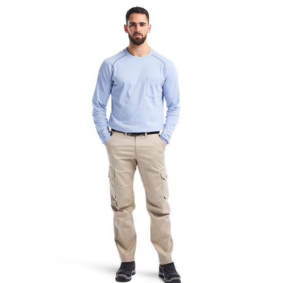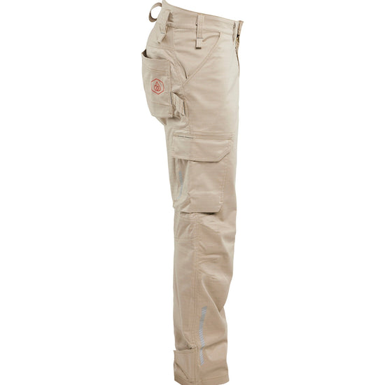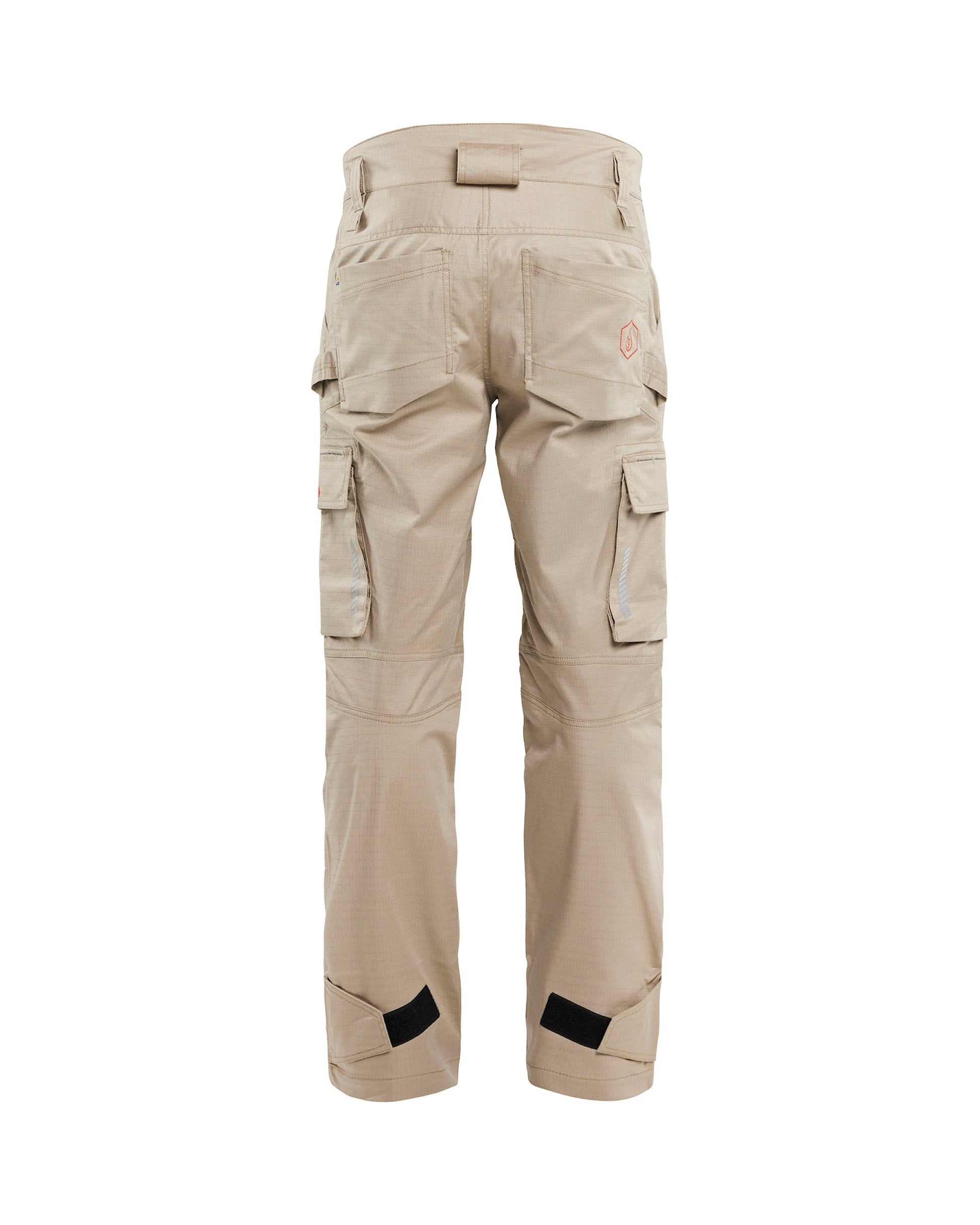 Blaklader Fire Resistant Stretch Pants combine durability and safety with advanced functionality. Crafted from a ripstop blend of 91% cotton, 7% polyamide, and 2% elastane, these 8.3 oz pants offer 2-way stretch and an ergonomic fit for enhanced mobility. Key features include a reinforced crotch seam, gusseted crotch, extended waistband and belt loops for secure tether attachment, and flame-resistant embroidery. Multiple pockets with bellows, flaps, and hidden snaps provide practical storage, while adjustable Velcro leg bottoms and reflective tape enhance comfort and visibility in demanding environments.