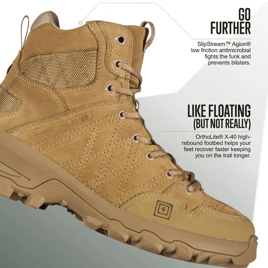 Enjoy ultimate comfort and durability with the 5.11 Cable Hiker Tactical boot. Featuring SlipStream™ Agion® and OrthoLite® X-40 footbed technologies, these boots will keep your feet feeling and smelling fresh, with robust protection and shock resistance. For superior stability and traction in any environment, the Speed 3.0 all-terrain outsole is perfect for conquering the toughest trails.
