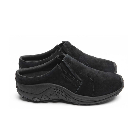 The versatile Merrell Jungle Slide is a low-maintenance footwear option crafted with a pig suede leather upper and Merrell Air Cushion underfoot for added support. The breathable mesh lining and mesh footbed cover keep your feet cool and comfortable, while the Cleansport NXT™ technology ensures natural odor control. Additionally, the removable EVA foam footbed is made from 50% recycled materials, and the lightweight EVA foam midsole provides stability and cushioning. To top it off, the Merrell’s sticky rubber outsole is designed to provide superior traction.